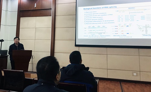 报告上,徐永镇教授介绍了在分子生物学中,RNA剪接主要是指细胞核内基因信息在转录过程中或是在转录过后的一种修饰的基因重组现象,而次要剪接是RNA剪接中的一种类型,许多人类疾病与次要剪接体和U12型内含子有关,如已在生长激素缺乏症、早发性小脑共济失调和I型小头畸形原发性侏儒症中分别鉴定出65K蛋白、U12和U4atac snRNA的突变;U12型内含子(STK11和TRAPPC2基因的5'SS)的突变分别与Peutz-Jegher's综合征和脊椎骨赘发育迟缓有关。