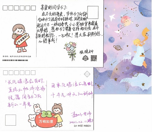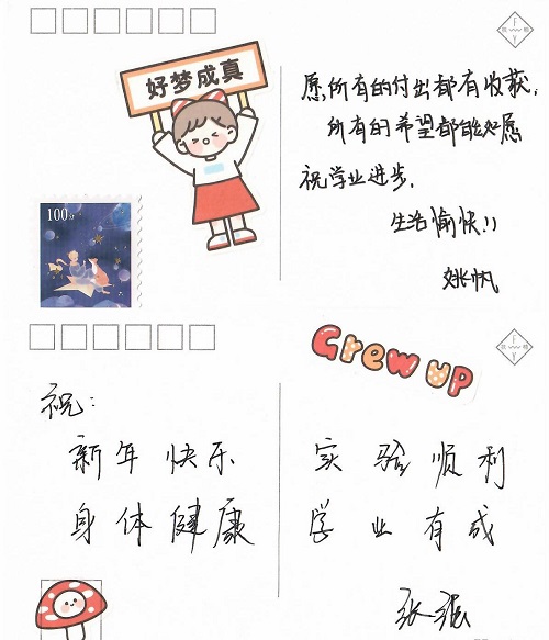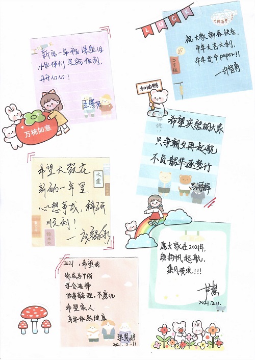 2月11日除夕,学院共有12名同学因疫情防控需要,“就地过年”。回家过年是欢聚,留校过年亦可团圆。为了让同学们感受到满满年味,学院为留校师生准备了热腾腾的水饺,让离家的学子也能吃到“家”的味道。在贺新年的明星片上,大家共同写下对学生、对老师、对伙伴、对家人、对自己与对未来的祝福与期许。