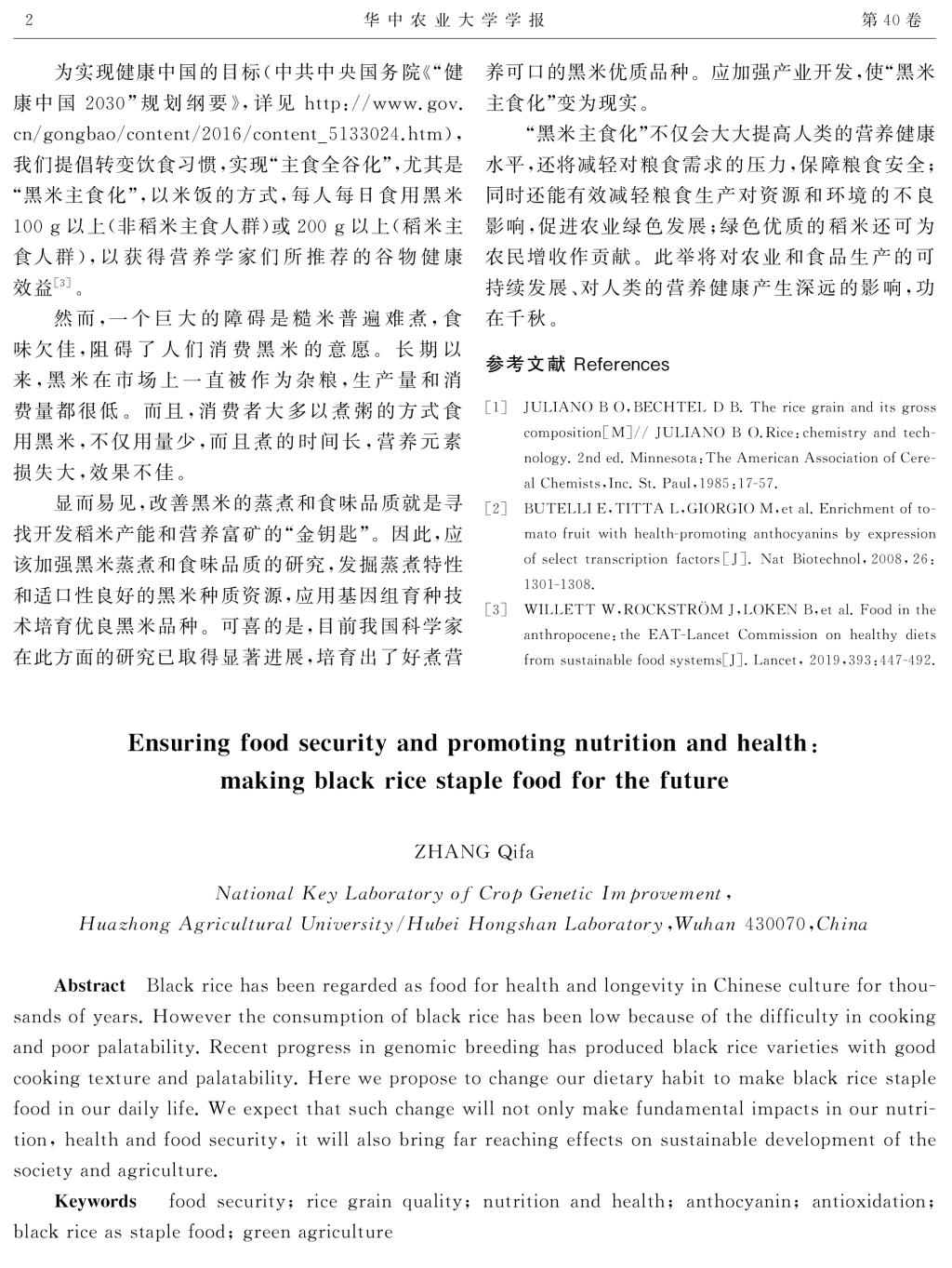 保障粮食安全, 促进营养健康: 黑米主食化未来可期
