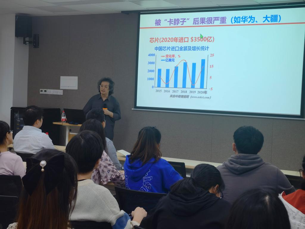 徐富强教授首先为在座的师生们讲述了科学研究到产业的构成体系,他表示目前基础研究和产业化、商业化是非常繁荣的,但中间最重要的转化研究环节最为薄弱的。徐富强教授整合分子细胞生物学、神经生物学、病毒学、合成生物学等科学领域以改造、制备、应用和评价研究病毒载体的工作,正是一种重要的转化研究,他激励研究生们今后为转化研究舔砖加瓦,加速基础和应用科研向产业化和商业化迈进。