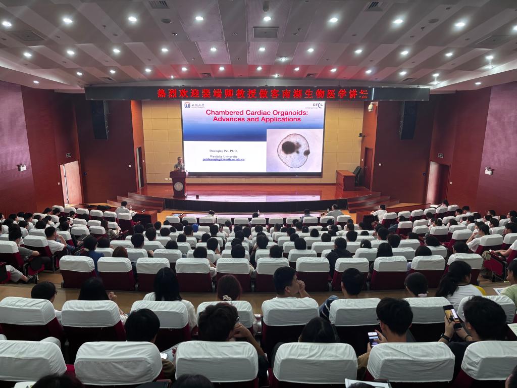 (通讯员 张若琳)5月7日下午,我校校友、西湖大学裴端卿教授应邀来我校开展学术交流。在作物遗传改良全国重点实验室学术报告厅,裴端卿教授参加了由太阳集团tyc33455、生命科学技术学院、湖北洪山实验室共同主办的第11期南湖生物医学讲坛。他以“心脏类器官的研究进展与应用”为题,为在场数百名师生讲述了细胞重编程机制以及心脏类器官培养技术的新突破。张启发院士、重点实验室团队专家、相关学院负责人、教师代表和学生参加报告会。
