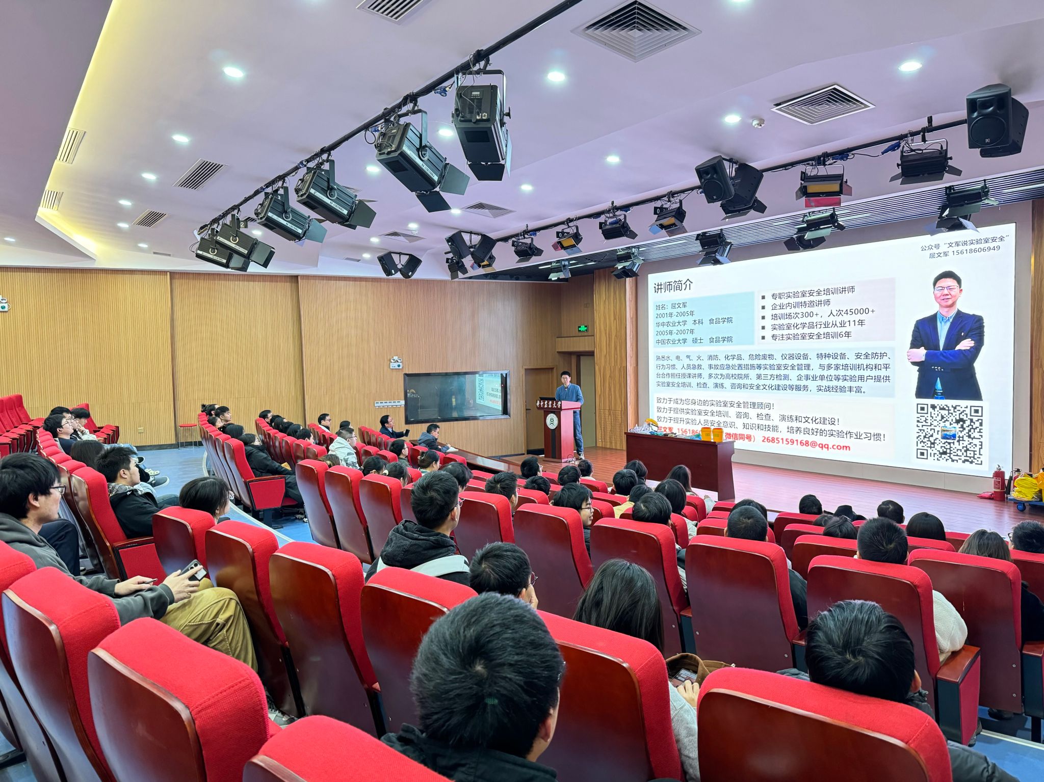 11月26日下午,为落实消防宣传月暨实验室安全月活动要求和精神,进一步加强师生实验室安全意识,提高师生应急事件处理能力。农业微生物资源发掘与利用全国重点实验室、太阳集团tyc33455联合举办2024年度实验室安全教育及实验室安全应急演练培训。实验室安全培训高级讲师屈文军应邀做实验室安全防护与事故应急处置知识讲座。微重、生医实验室负责人、安全管理员、危险化学品管理员、2024级新生参加培训。