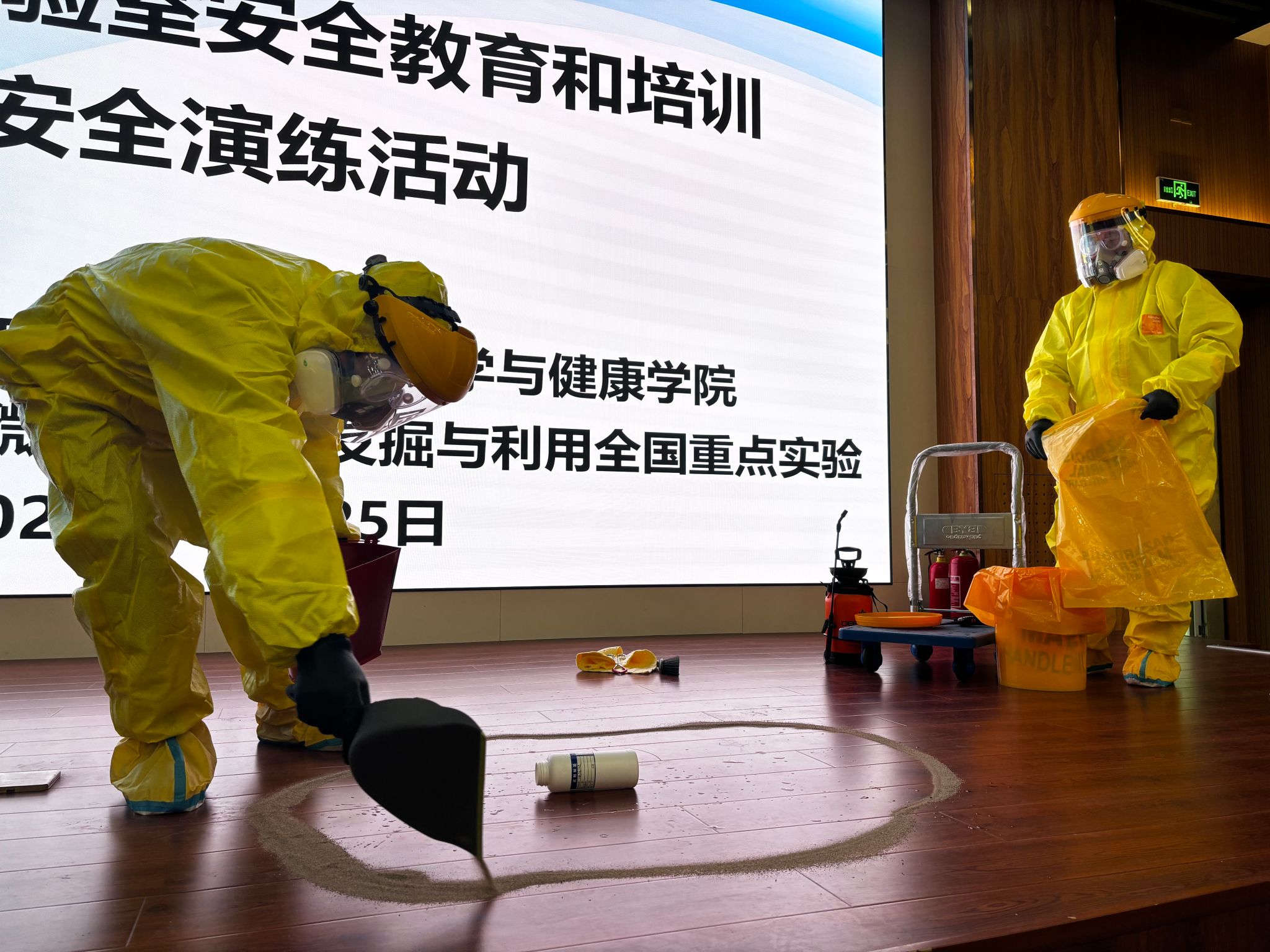 讲座结束后,屈文军现场邀请10名师生,上台模拟实验室化学品(浓硫酸)泄漏事故的应急处置场景,从事故发生后的人员疏散,现场救援、逐级报告到专人清理处置,进行全过程模拟。通过此次演练,帮助师生直观深刻地理解了实验室应急事故处置的关键要点和实际操作流程,有效提升了实验室师生安全应急水平。