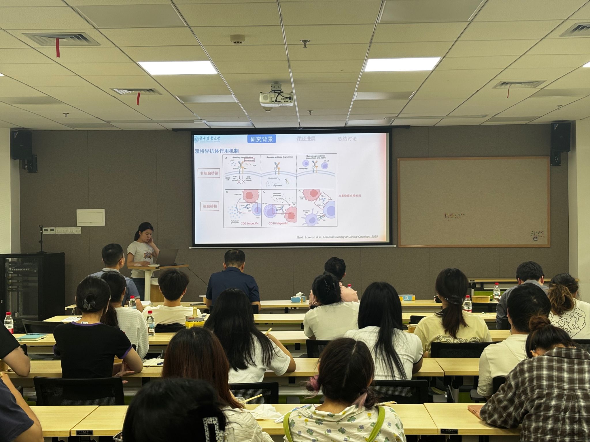 李光强围绕缺血性脑卒中治疗中神经保护与血管再通两大关键病理环节展开,重点展示课题组创新研发的两种气体响应型生物纳米材料。这些材料通过精准调控病灶微环境,实现了治疗靶点的智能响应与协同干预,为突破现有治疗瓶颈提供了创新性解决方案。麻旭倩则报告了肿瘤免疫治疗新靶点B7-H6,基于多种癌种B7-H6的表达分析揭示其肿瘤特异性表达模式。同时,靶向B7-H6的T/NK细胞型双特异性抗体以及IL-15/IL-15Rα sushi融合蛋白在细胞水平以及动物模型中具有显著抗肿瘤活性,为肿瘤免疫治疗提供了新的思路以及更有效的联合治疗手段。
